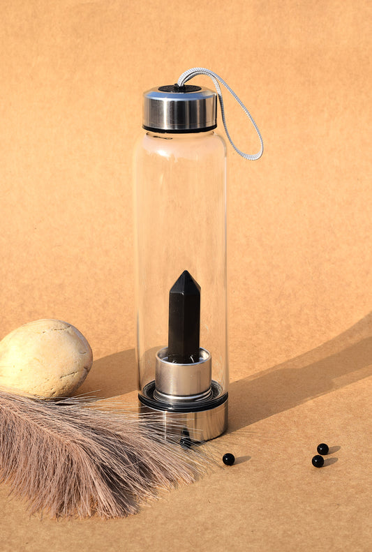 Black Obsidian Crystal Water Bottle | Detox, Protection & Energy Balance